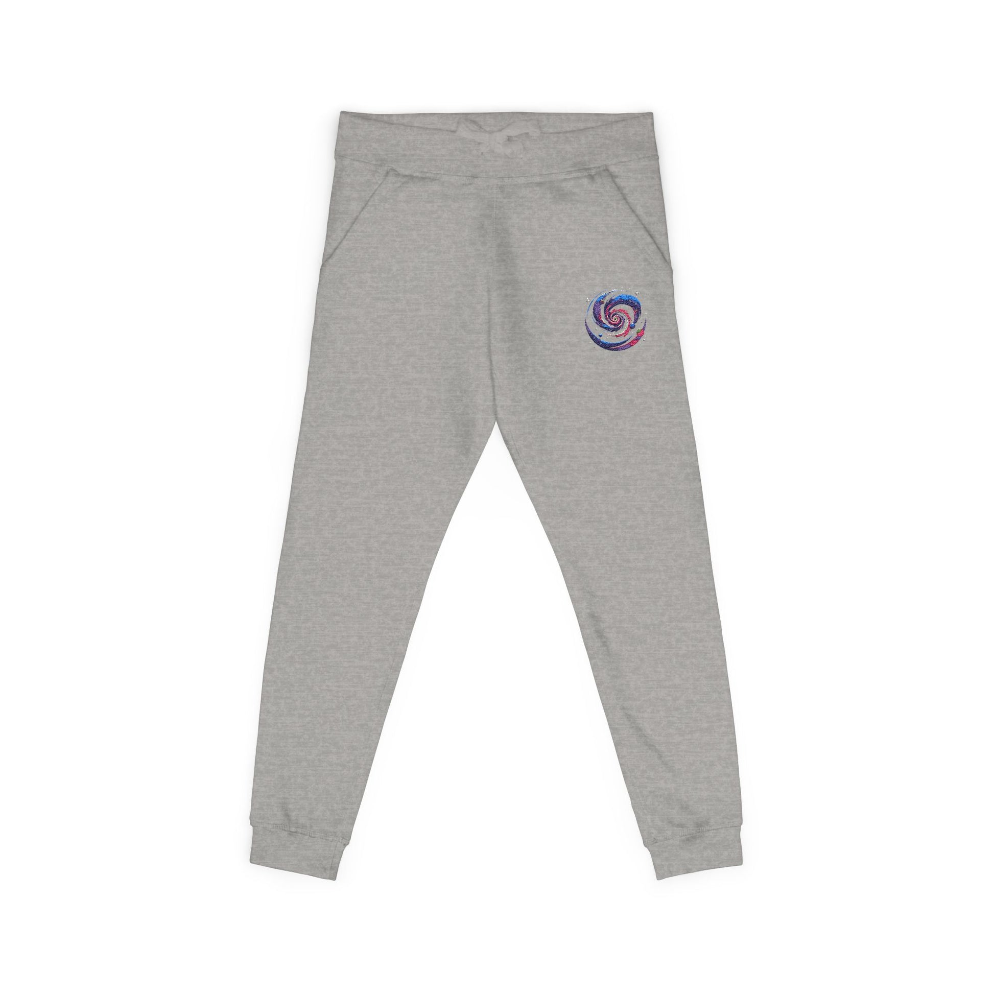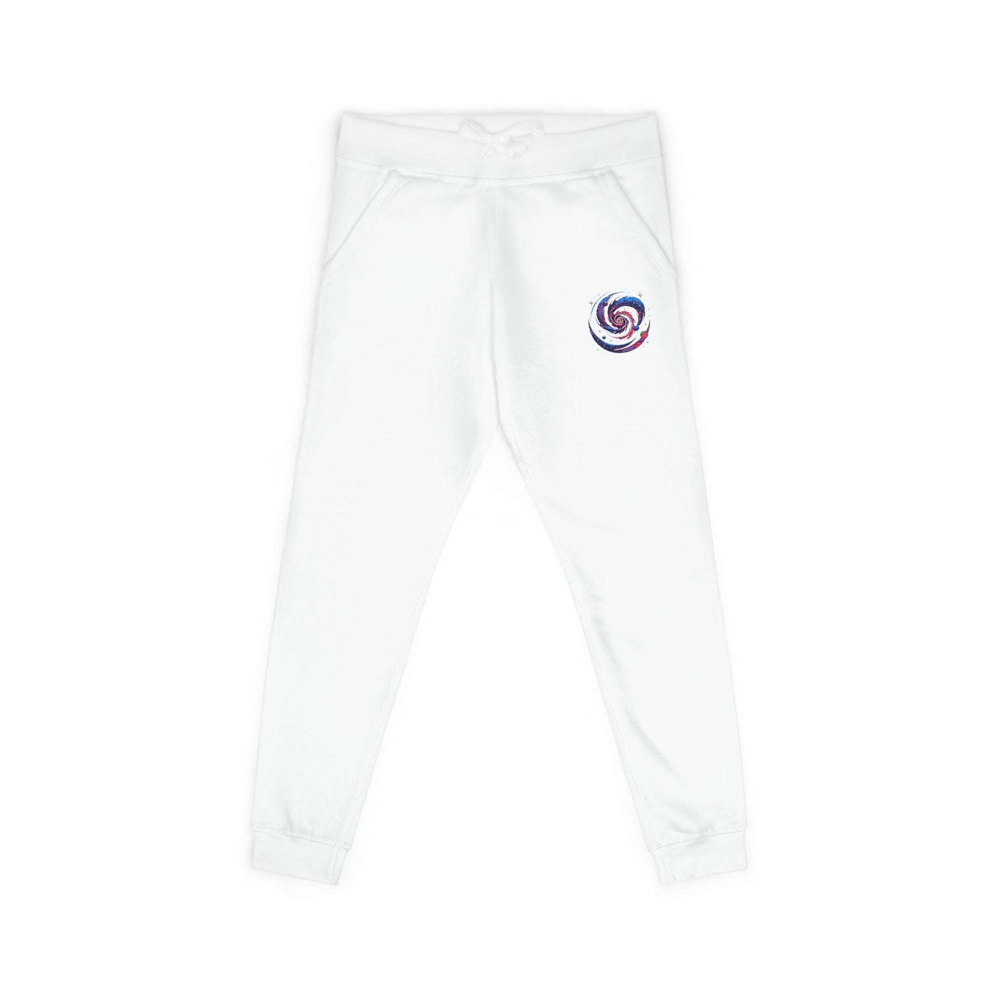 Embroidered Spiral Tie-Dye Joggers — White Fleece Sweatpants