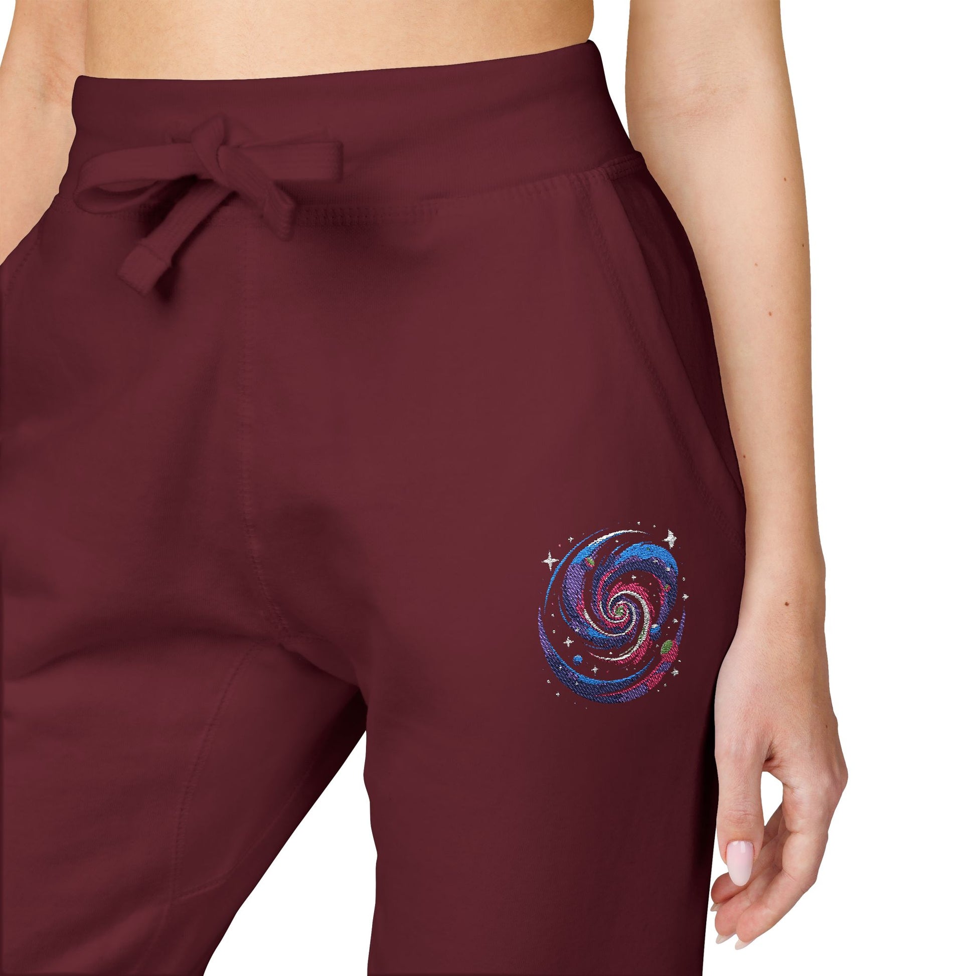 These fleece sweatpants bring everyday comfort into crisp focus — soft against the skin, built to hold their shape, and detailed with subtle embroidered artwork at the hip. The mid-weight, tightly knit fleece gives a cozy, structured feel that moves with you. Cuffed ankles and a ribbed waistband keep the silhouette tidy while the flat drawstrings and elastic inside the waist let you dial in the fit. Pockets up front and a top-stitched patch pocket at the back add practical storage without bulk. Wear them for slow weekend mornings, commute days when you want comfort without looking sloppy, or evenings by the fire with friends.