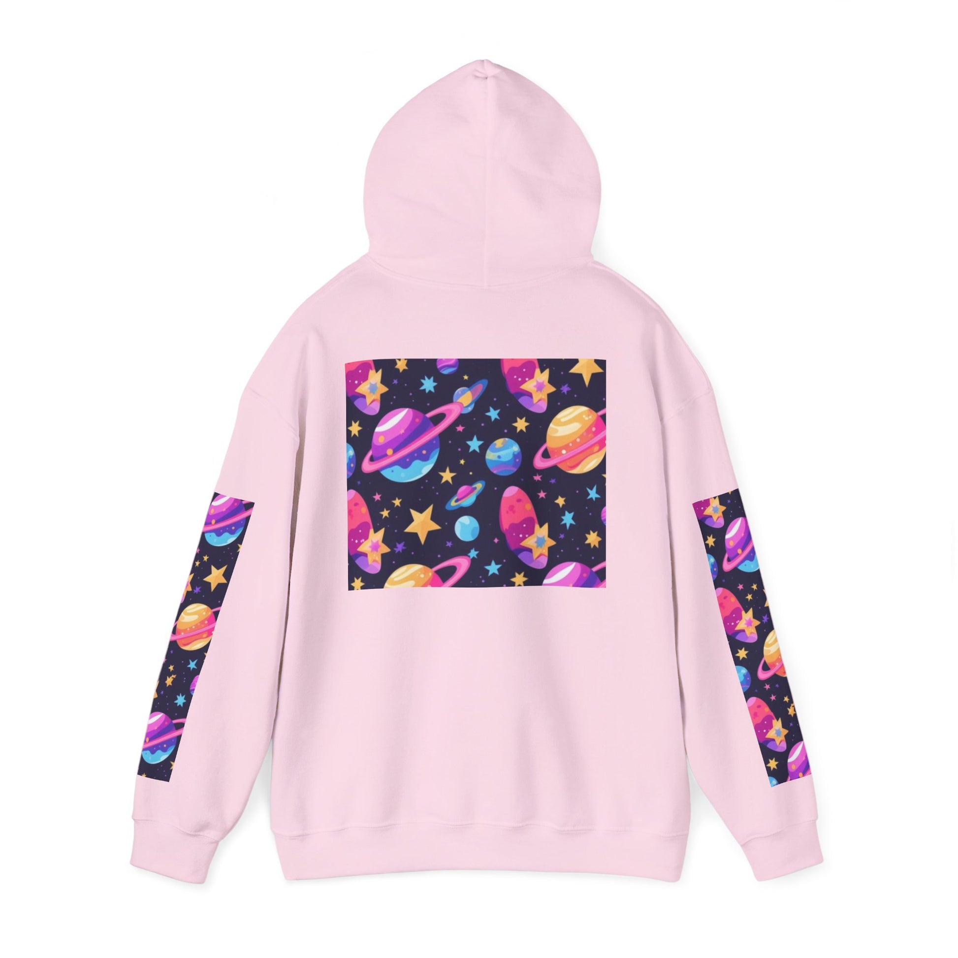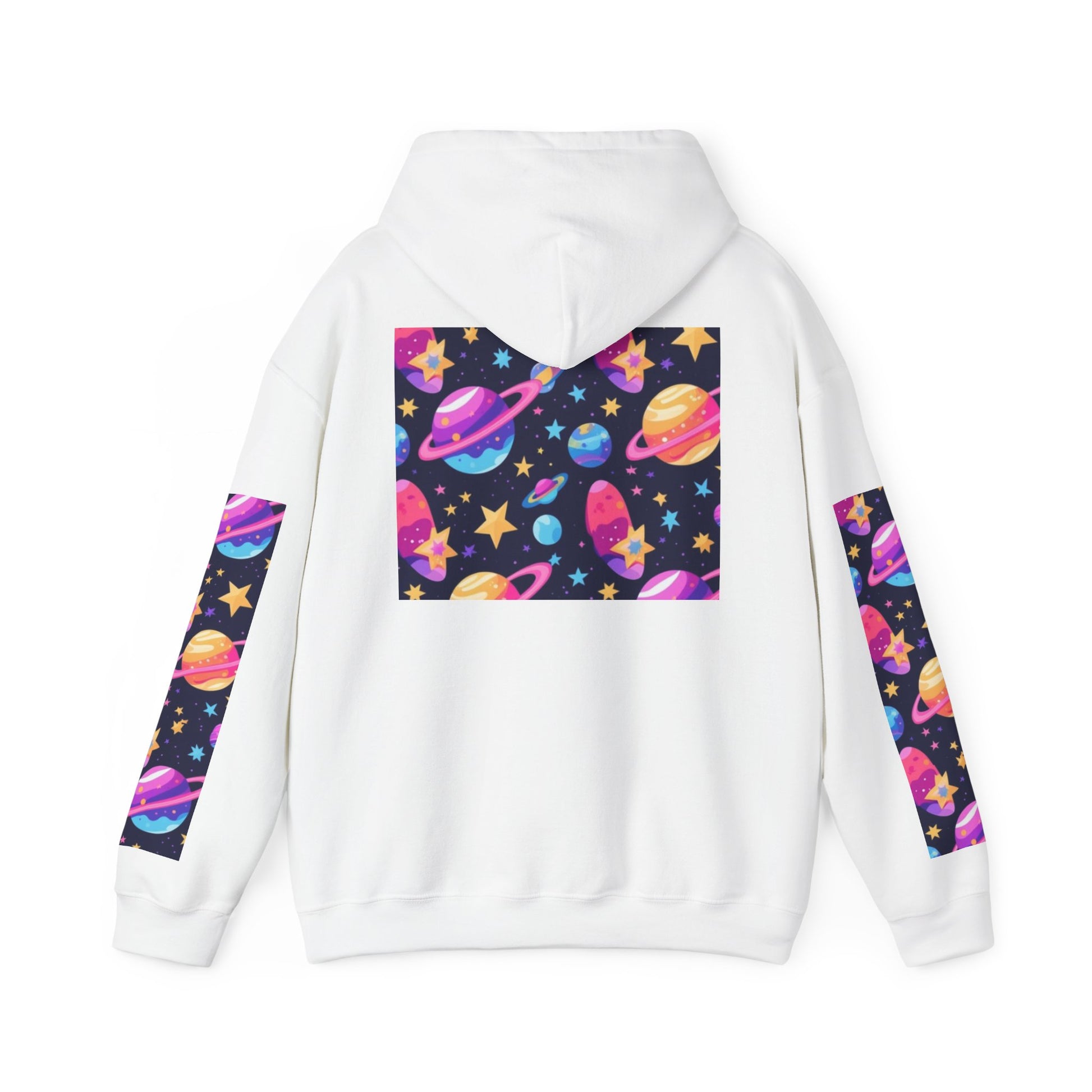 Space Pattern Hoodie — Colorful Planets & Stars Graphic Hoodie